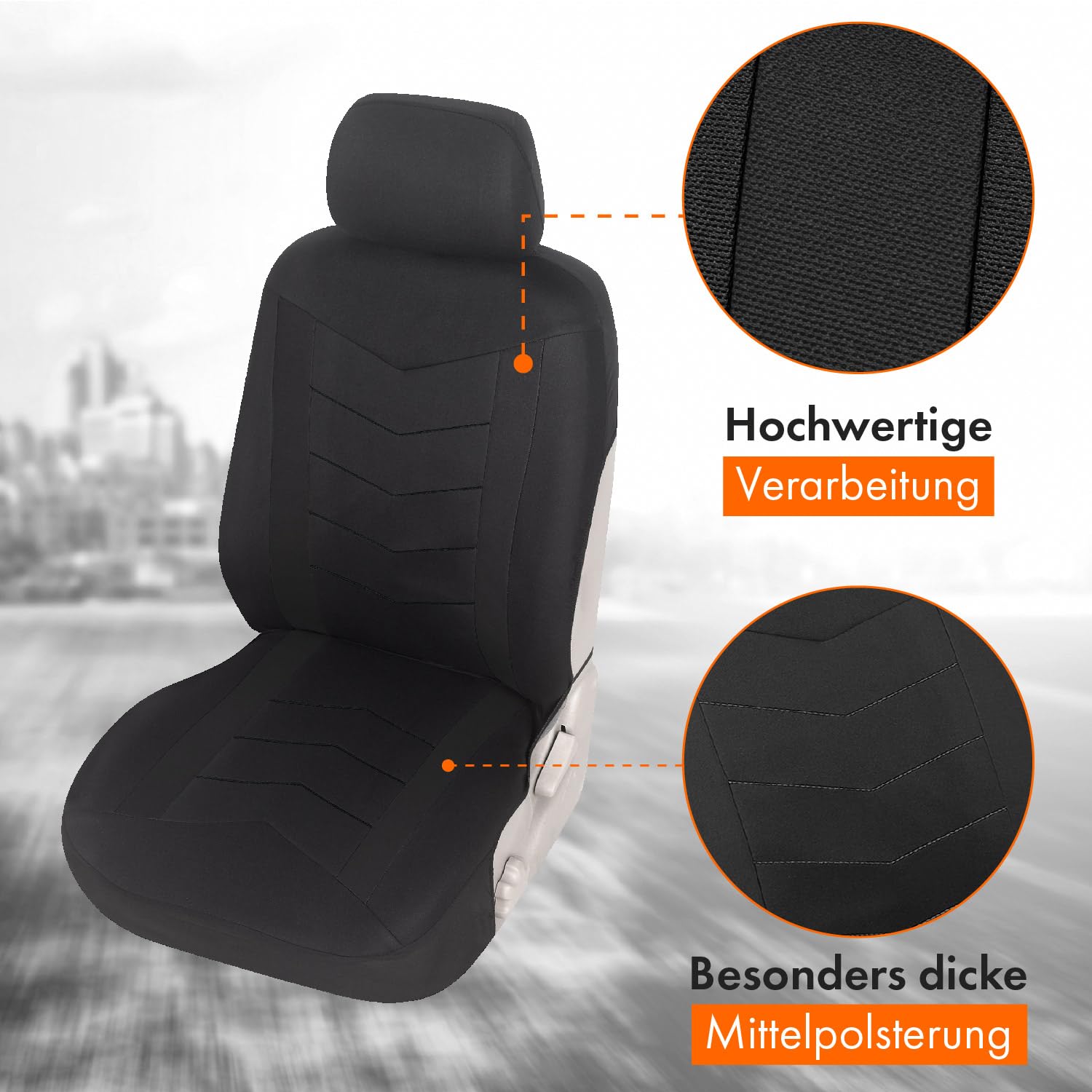 Upgrade4cars Autositzbezüge Set für Vordersitze, Universal Schwarz